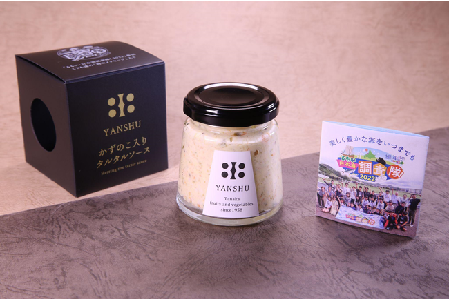 海と日本プロジェクトin北海道実行委員会は、こどもたちの海へのメッセージを添えた「かずのこ入りタルタルソース」を2022年8月30日(火)に発売します。この商品は、8月8日(月)~10日(水)に北海道留萌市で開催した「るもい・日本海調査隊!2022」に参加した北海道の小学生18人が、学びの成果の一つとして開発したものです。調査隊では海と「科学技術」、「風」をテーマに、ICTを活用した漁業などを学び、留萌で豊漁だったニシン漁とその歴史、水産残渣の循環についても調査しました。「かずのこ」はニシンの卵巣を塩漬けや乾燥させたもので、生産量は留萌が日本一(留萌地域振興部調べ H17統計資料より)。今回、タルタルソースと組み合わせた新商品を作りました。かずのこのプチプチした食感と優しいソースがフライやサラダによく合います。参加したこども達の「海を未来へつなぐメッセージ」ブックレットが同梱されます。この商品を通して、留萌のニシンを感じて海の未来を考えるきっかけを創出します。