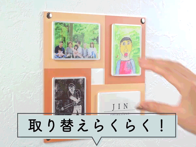 このようにして印刷されたプレートを専用のフレームにセットします。スタンド・壁掛けどちらにも対応しています。長方形・正方形の2形状、8タイプのカラーから、お部屋のイメージに合わせて選べます。