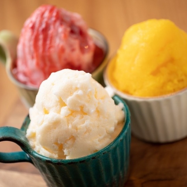 氷をザクザク削ったところにシロップをかけた感じとは違い、シャーベットやスムージーに近い新食感のかき氷を実現致しました。