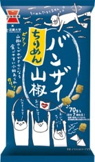 2018年より販売しているあられのお菓子です。山椒のしびれがクセになるカリッと食感の小粒あられで、パッケージのネコのような生き物が万歳をする、ゆるかわイラストがSNSで人気を呼び、山椒ブームの後押しもあってコアなファンを獲得しました。