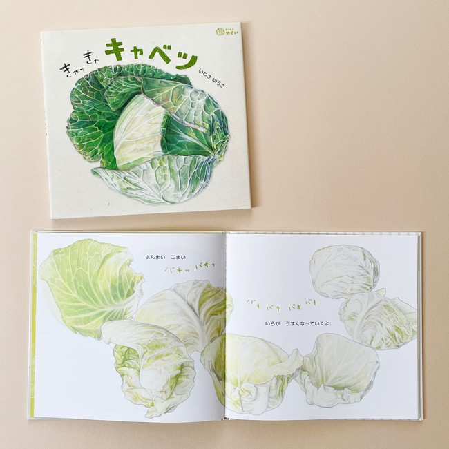 例えば、キャベツは葉が何枚も重なって丸くなっているやさいですよね。ぜんぶむいてみたことがある人はあまりいないと思いますし、絵本だからこそ、そんな場面を描いてみたいと思いました。