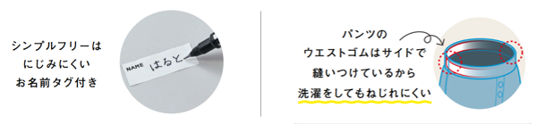 ストレッチ性が優れていて動きやすく、お名前タグ付きなので、活発に動く保育園での着用もおすすめです。