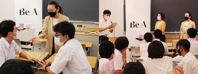 互いの立場を想像しながら、相手に配慮することはこれから社会に出ていく時に必要なこと。共に生きていく女性に起こる生理を知り、いざという時の心構えとその対応について生徒と意見交換をしたことで、Be-A Japanとしても実り多い時間となりました。