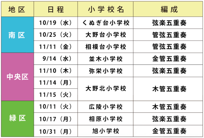 相模原市民文化財団では、プロの音楽家たち(相模原音楽家連盟所属)と協力し、市立小学校で生演奏を届ける「学校訪問授業」を2008年度から継続して行っています。