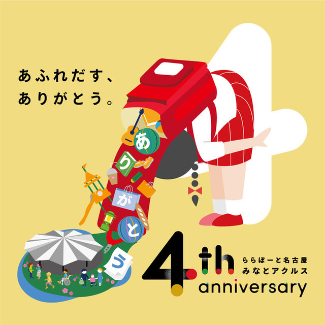 本キービジュアルは、4周年の各告知媒体に掲載し、ららぽーと名古屋みなとアクルス4周年を彩ります。