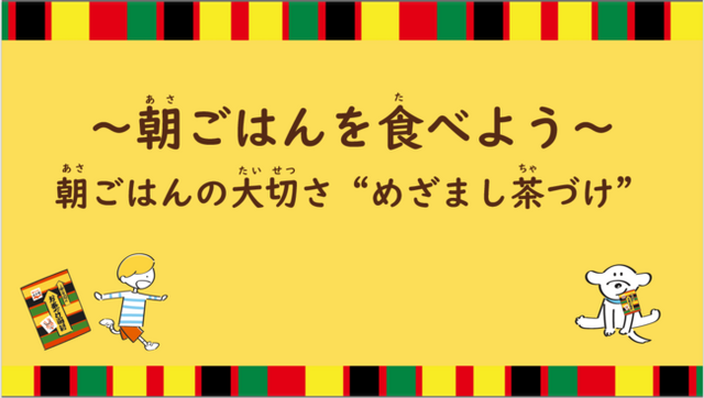株式会社 永谷園(社長:成田 健一、東京都港区)は、全国47都道府県の小学校で「朝ごはんの大切さ」を学ぶ授業を2022年9月から10月にかけて実施します。朝ごはんに対する悩みが多い小学校低学年(1~2年生)を対象とし、1日を元気にスタートするために大切な「あたま・からだ・おなか」のスイッチが朝ごはんを食べると入ることや、弊社が2020年よりご提案している「めざまし茶づけ」についてなど、スライド資料や先生の言葉を通じて楽しく学んでいただける内容となっています。生活のリズムが切り替わる新学期のタイミングに本企画を実施することで、朝がニガテなお子さんにも朝ごはんを楽しみながら食べてもらうきっかけづくりを目的としています。