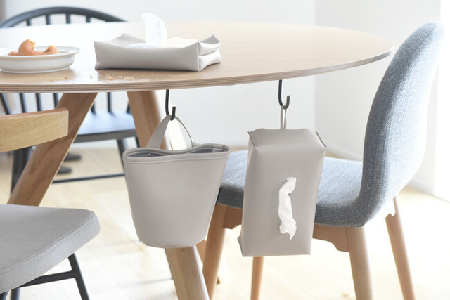 テーブルの近くに吊り下げておけば、使ったティッシュをすぐに捨てることも。