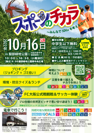 この度FC大阪は、子育て支援団体「ママコミュ!ドットコム」と「北大阪急行電鉄株式会社」と共に、大阪府営服部緑地において「スポーツのチカラ ~みんなでSDGsを考える日~」を開催する事になりましたのでお知らせ致します。