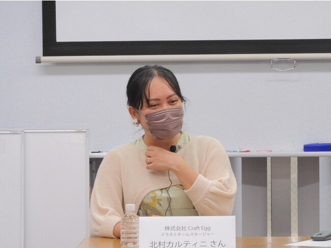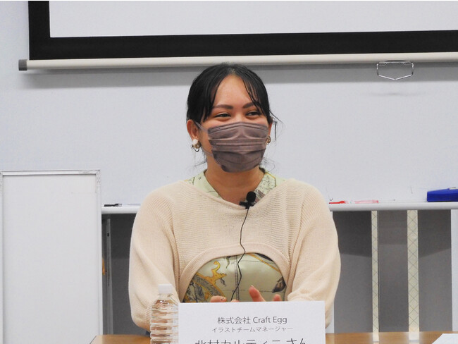 ゲストは、スマホ向けゲーム「バンドリ! ガールズバンドパーティ!」の開発・運営をおこなう株式会社Craft Eggのイラストチームマネージャーであり、本学院の卒業生(2014年卒)でもある北村カルティニさん。