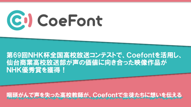 株式会社CoeFont(本社:東京都港区、代表取締役:早川 尚吾、以下当社)の提供するAI音声プラットフォーム「CoeFont」を利用した映像作品「とどきますか?私の声(Coe)」で、仙台市立仙台商業高校が、2022年7月25日から28日まで行われた第69回NHK杯全国高校放送コンテストにて、優秀賞を獲得しましたことをお知らせします。