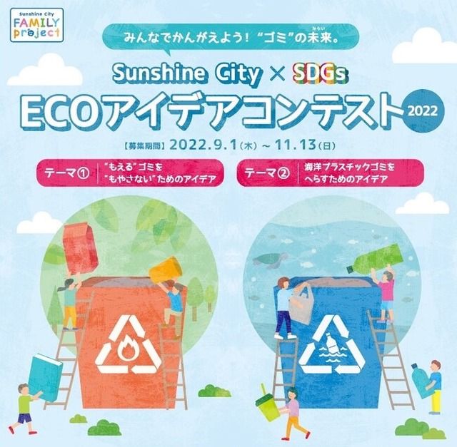 株式会社サンシャインシティ(東京都豊島区、代表取締役社長:合場直人)は、子どもたちがゴミ問題について考えるきっかけを作ることを目的に、豊島区後援のもと「Sunshine City × SDGs ECOアイデアコンテスト2022」を実施し、現在、小中学生からアイデアを募集中です。