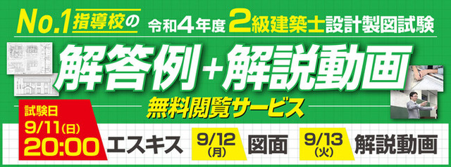 ▼2022年度 2級建築士設計製図試験 解答例 + 解説動画 無料閲覧サービス