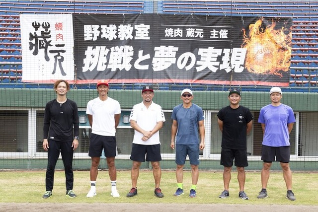 2009年に山口県下松市でスタートした「焼肉 蔵元」が、地域貢献の一環として、少年たちに夢の実現に向け、挑み続けることを学んでもらおうと野球教室の開催を企画しました。交流があり、焼肉 蔵元を懇意にしていただいていた福岡ソフトバンクホークスOBの松中信彦さんに相談したところ、快諾とともに他OB選手にお声がけいただき、創業の地である山口県周南エリアでの野球教室が実現しました。