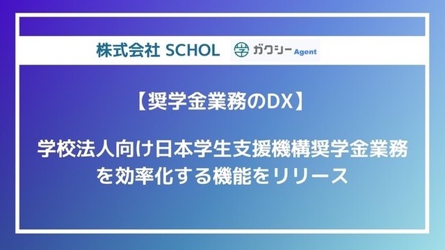 SCHOL社は、学生向けには日本に存在するほぼ全ての奨学金1万4,000件以上をランキングや様々な条件で検索できるサイト「ガクシー」を、奨学金運営団体向けには運営業務を一元化できるクラウド型の奨学金運営DXシステム「ガクシーAgent」を提供することにより、この課題の解決を行っていきます。
