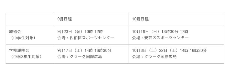 下記の日程にて練習会および学校説明会を予定しています。