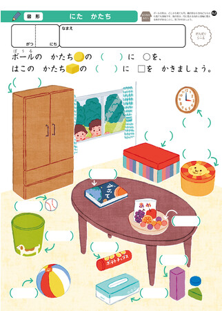 長さ・面積・量の比較(どれが一番大きい)、形の認識など、わかりやすいイラストをヒントに楽しく取り組みます。
