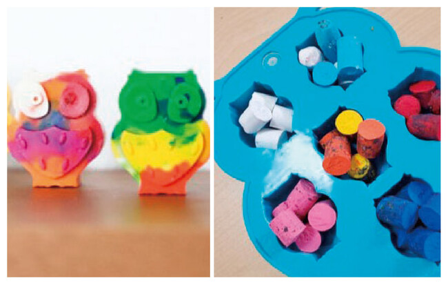 短くなったり、折れてしまったクレヨンを溶かしてつくるカラフルなリサイクルクレヨン。