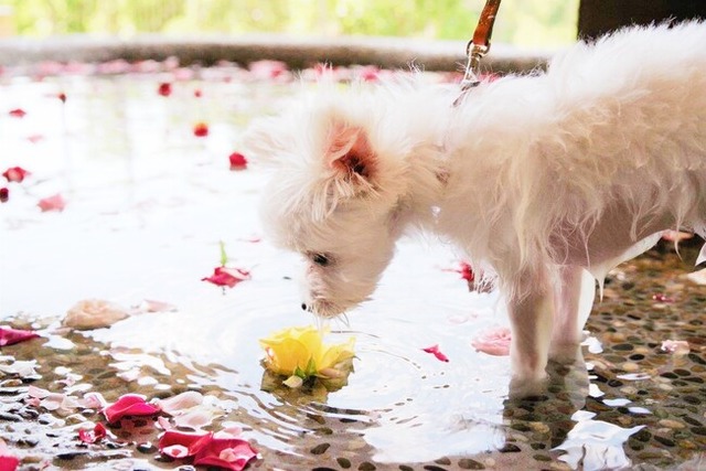 1. 愛犬温泉(愛犬用の銀泉足湯)での『愛犬のバラ風呂』