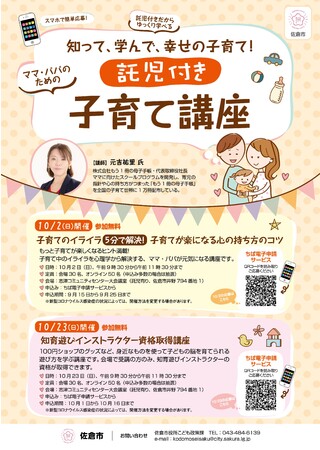 千葉県佐倉市では、そんなママやパパの気持ちを少しでも軽くしたいとの思いから、子育て世代向けの講座を開催します(参加無料)。