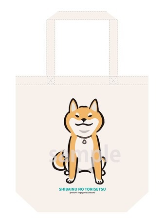 トートバッグは本書のカバーイラストでもある、凛々しくおすわりする柴犬を全面にプリント。A4サイズが入り、肩掛けも可能なので通勤・通学・お買い物にも便利な1枚です。