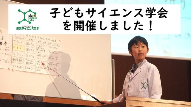 株式会社増進会ホールディングス(Z会グループ)のグループ会社で、進学塾「栄光ゼミナール」を運営する株式会社栄光(本社:東京都千代田区、代表取締役社長:下田勝昭)は、科学実験専門教室「栄光サイエンスラボ」において、7月と8月に「子どもサイエンス学会」を開催しました。毎月2回行う授業の中から特に興味を持ったテーマや実験を掘り下げ、生徒や保護者の前でプレゼンテーションをする学会です。
