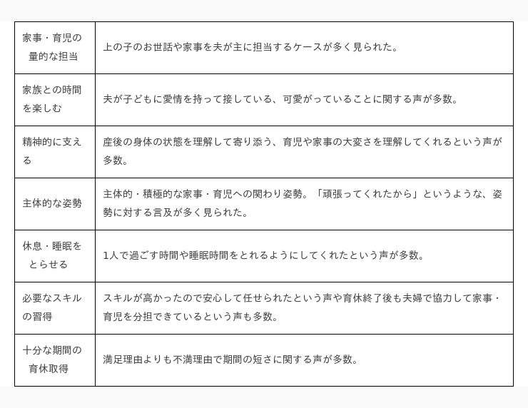 前回のプレスリリース(https://prtimes.jp/main/html/rd/p/000000106.000019831.html)では育休を取得した男性の44.5%が育休中の家事・育児時間3時間以下という「とるだけ育休」の実態をお伝えしましたが、今回は調査結果のうち、実際に夫が育休を取得した妻側のリアルな声を元に明らかにした「とるだけ育休」を防ぐ7つの法則をお伝えします。