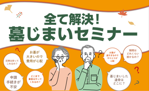 仏事関連総合サービスの株式会社メモリアルアートの大野屋(東京都立川市、代表取締役社長 奥田実)は、2022年9月29日(木)に、お墓ディレクター1級のスペシャリストが、墓じまいの最近の傾向やよくあるトラブルを防ぐポイントを紹介する「全て解決!墓じまいセミナー」を東京・国分寺「cocobunjiプラザ」にて開催します。 詳細URL:https://bit.ly/3CLanBI