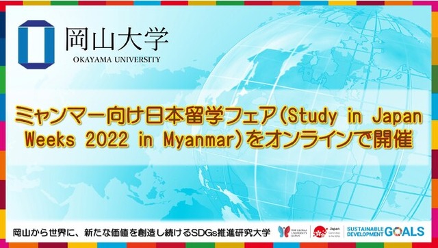 国立大学法人岡山大学(本部:岡山市北区、学長:槇野博史)は、日本留学海外拠点連携推進事業(東南アジア)の一環として、2022年8月8日から9月9日の約1か月にわたり、ミャンマーからの日本留学希望者及び進学指導者等を対象としたオンライン日本留学フェアを開催しました。