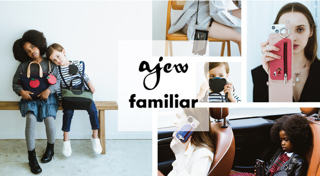 2021年3月、子育て中のママをターゲットに、機能性とデザイン性を兼ね揃えた商品を作りたいという両社共通の想いからコラボレーションが実現。ajewの人気アイテム “ajew cadenas zipphone case” にファミリアチェックをあしらった別注モデルとPVCバッグを販売したところ、即日完売するほどの好評を博し、2021年7月には追加販売も実施いたしました。お客様から新作アイテムを心待ちにする声を多数いただき、2022年もコラボ企画化が決定いたしました。