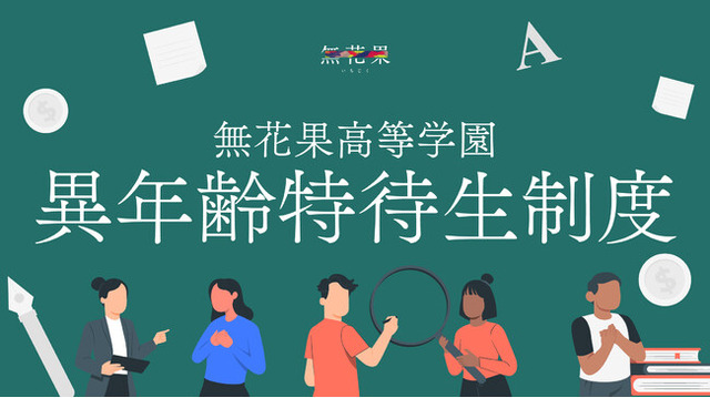 また、コロナ禍において、既存の枠組みに捉われない学校への需要が高まっています。無花果高等学園ではそのような声に応え、アンラーニングの促進や学びの多様性の確保を目的に、幅広い年代の生徒を募集する「異年齢特待生制度」を開始いたします。