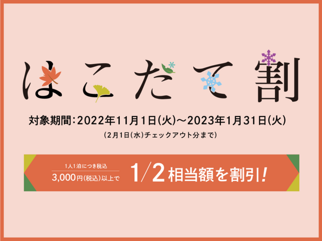 宿泊対象は年末年始を除く、11月1日~1月31日まで。
