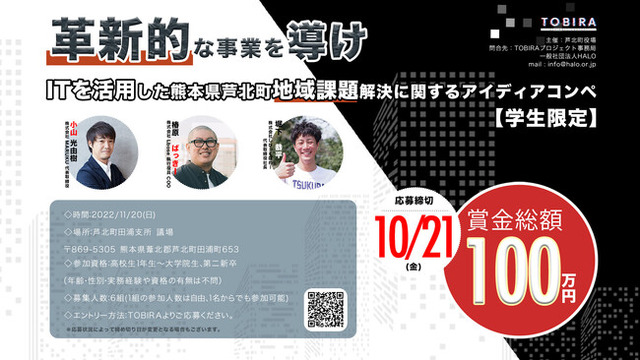 都市部から進出したIT企業グループで構成される一般社団法人HALO主催として、学生のためのビジネスコンテスト『TOBIRA』。