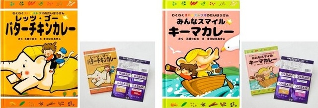 *画像左から、【シリーズ1作目:レッツ・ゴー☆バターチキンカレー】、【シリーズ2作目:みんなスマイル☆キーマカレー】