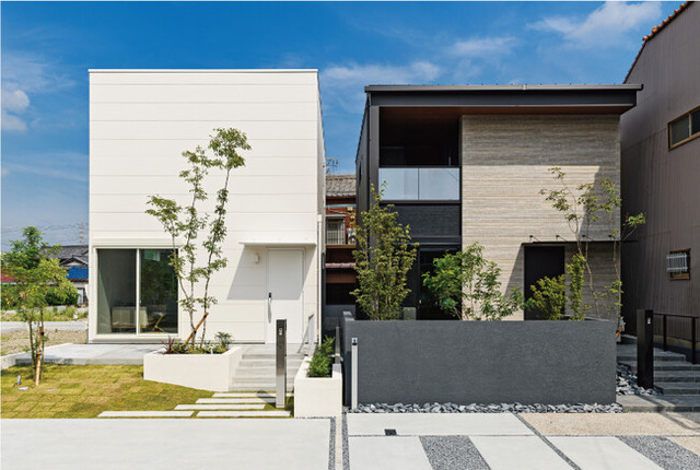 また、マチかど展示場「中村区横井の家」は、当社のメインブランド「アールギャラリー」と2021年度グッドデザイン賞を受賞した「Fの家」の2棟並びとなっており、住宅展示場だけではイメージがつきにくい街並みとの調和、敷地の使い方、住宅地における光の採り込み方などをよりリアルに体感できます。