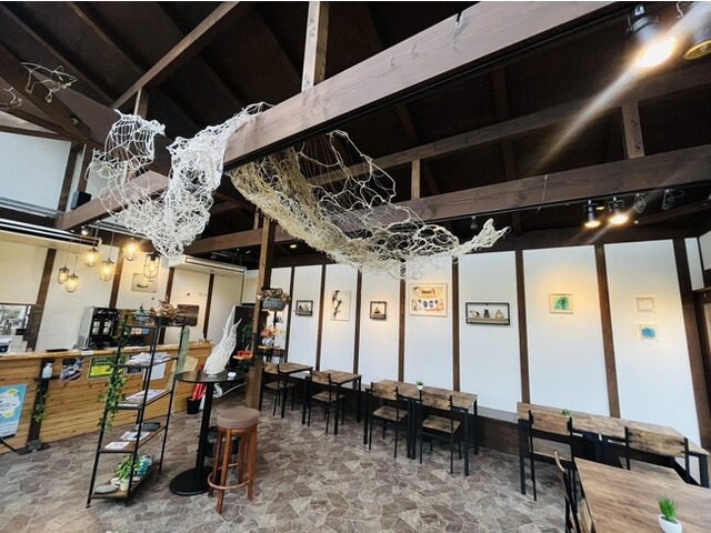 カフェ内に展示があるので、芸術的な現代美術作品を見ながらお食事やスイーツ、お喋りも楽しめます。撮影もOKです!お散歩やサイクリング途中に寄る方、ランチやお茶をしながら作品を見に来る方も多くいますので、ぜひお気軽にお立ち寄りください。