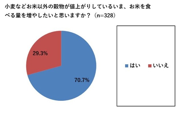 「小麦価格の高騰を理由にお米を食べる量を増やしたい」と回答した人が70.7% なかでも「朝食をパンからごはんへ変更したい」人が3人に1人も!