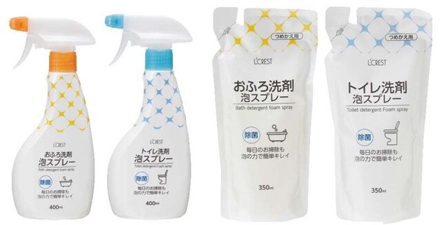 コメリのオリジナルブランド「L’CREST(ルクレスト)」から、おふろ・トイレ用の泡スプレーが登場します。本シリーズは、年間20万個以上販売しているシリーズのリニューアル商品となります。パッケージは、白を基調としたデザインに一新し、形状についてもより握りやすく改良いたしました。さらに、成分に「除菌」効果をプラス。お風呂、トイレの清掃時にぜひご利用ください。