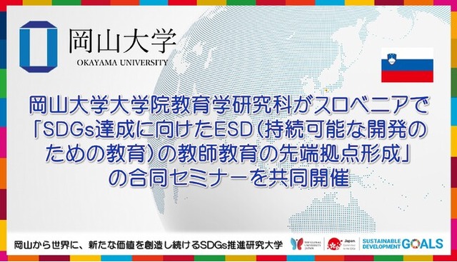 国立大学法人岡山大学(本部:岡山市北区、学長:槇野博史)の大学院教育学研究科は、スロベニアのルブリャーナ大学教育学部と共同で、20229月14日から17日の4日間、スロベニア・ルブリャーナ市において日本学術振興会研究拠点形成事業(A.先端拠点形成型)「SDGs達成に向けたESD(持続可能な開発のための教育)の教師教育の先端拠点形成」の合同セミナーを開催しました。