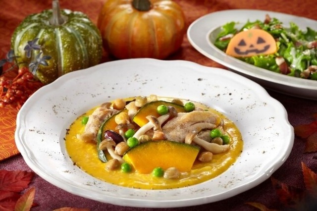 「あっ!と ごはん」では、毎月15日に“「あっ!と ごはん」の日”として、特別献立をご用意しており、10月はハロウィンをイメージした、かぼちゃの甘みが広がるソースを使ったチキンソテーをご用意しました。きのこやビーンズを散りばめ食感も楽しめる一皿です。ぜひ、この機会にお試しください。