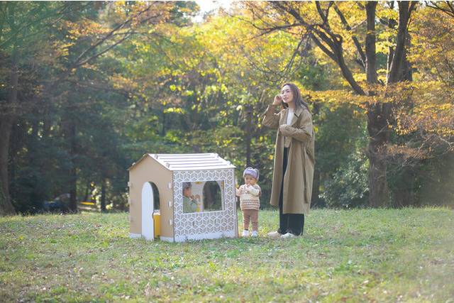 <先着200名様まで>当日参加可能なワークショップです。家のかたちにカットされた段ボールプレートに子どもたちが色を塗ります。できあがったプレートを地球をイメージした「HOME」フォトブースに貼り、チェキで記念撮影をします。撮影したチェキはオリジナルフォトスタンド付きでお持ち帰りいただけます。