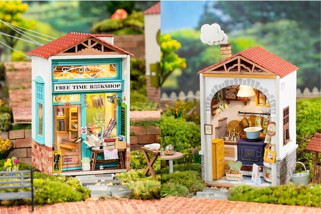全てのミニチュアハウスはLED付きで、小さなお店をあたたかなライトの光が照らしています。完成時間目安は、6時間~8時間。小さいながらも、作りごたえは充分です。