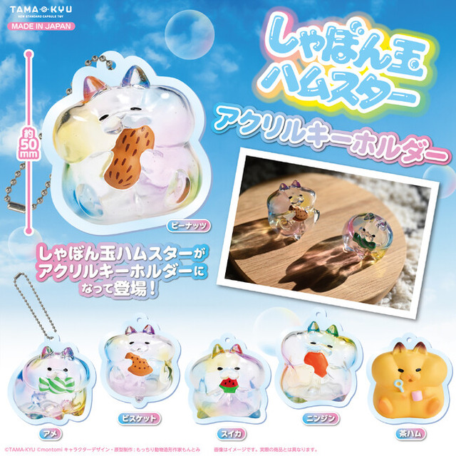 「しゃぼん玉ハムスター アクリルキーホルダー」は9月28日(水)より全国のカプセルトイコーナーにて順次販売致します。