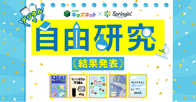 学研キッズネットが運営する「自由研究プロジェクト」内の特設ページにて、今回のコンテスト受賞作品を公開します。受賞作品の評価ポイントはもちろん、来年以降の自由研究にも活かせる解説コメントも公開。スプリンギンのアプリがなくてもウェブブラウザで作品を閲覧することができるので、こちらもご覧ください。
