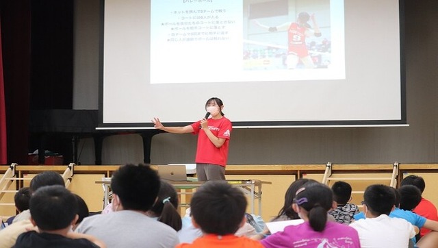 授業の最後には子どもたちにスパイクの迫力を披露し、子どもたちから「ボールが速くてビックリした!」と歓喜の声が上がった。