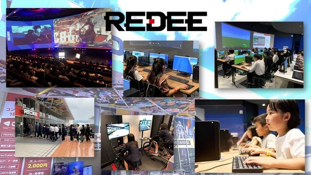 「REDEE」は、ゲームの体験を通じて、デジタル技術をはじめ、広域な知識やスキルを獲得するための施設として、2020年3月1日に大阪府吹田市のエキスポシティ内にオープンした日本最大級のデジタル教育施設です。258席を有するシアターのプロゲーマー体験エリアで、eスポーツ大会の出場者さながらの体験やゲーム実況者体験、VRやドローンの体験、プログラミング教室など、誰もが気軽に楽しんで、学べる施設です。