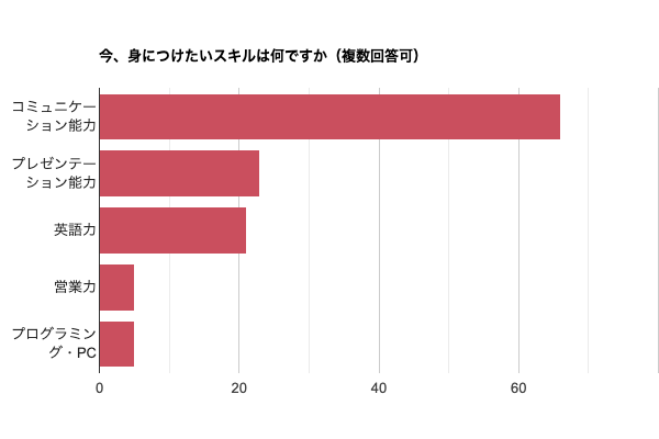 また、プログラミングを学びたいと答える割合が少ないなど、汎用性の高いスキルには回答が集まる一方で、専門性の高いスキルを求める生徒は少ないようです。