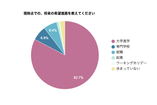高校卒業後の進路については、83%の高校生が大学進学を希望しております。
