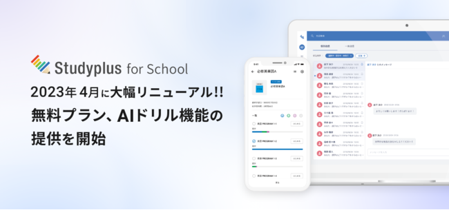 スタディプラス株式会社(本社:東京都千代田区、代表取締役:廣瀬高志、以下スタディプラス)は、教育機関向け学習管理プラットフォーム「Studyplus for School」を、2023年4月より大幅リニューアルして提供することをお知らせします。
