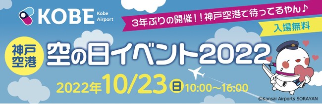 神戸空港では、9月20日の「空の日」を記念して、空港や航空機に親しんでいただくため10月23日(日)に「空の日イベント2022」を開催いたします。