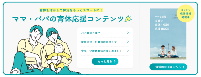 BABY JOBではこのような現状を改善し、多くの方の育休取得を推進するために、『ママ・パパの育休応援コンテンツ』として、育休に関する情報を幅広くまとめた新しいコンテンツをリリースしました。